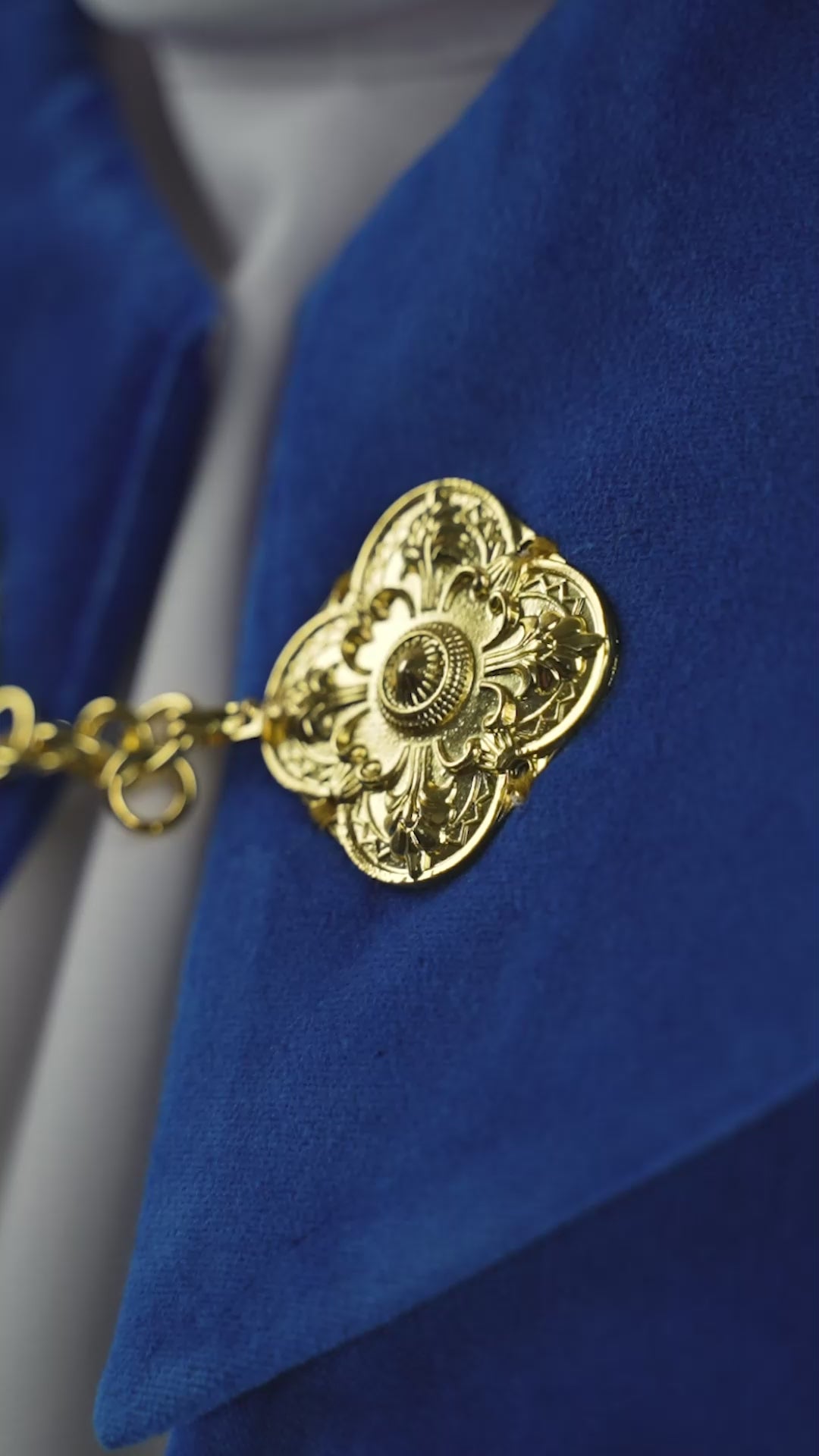 La cape est en satin uni de haute qualité. La capuche et les bretelles sont en velours 100 %. Décorée de broderies mariales.