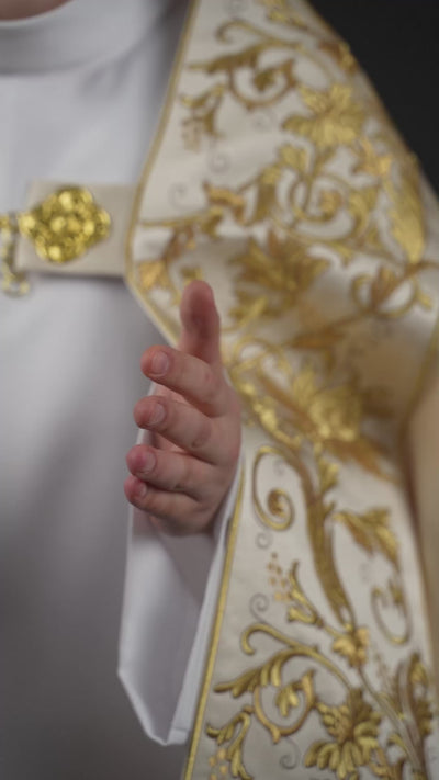 Cape romaine en satin écru avec cœur brodé du Seigneur Jésus