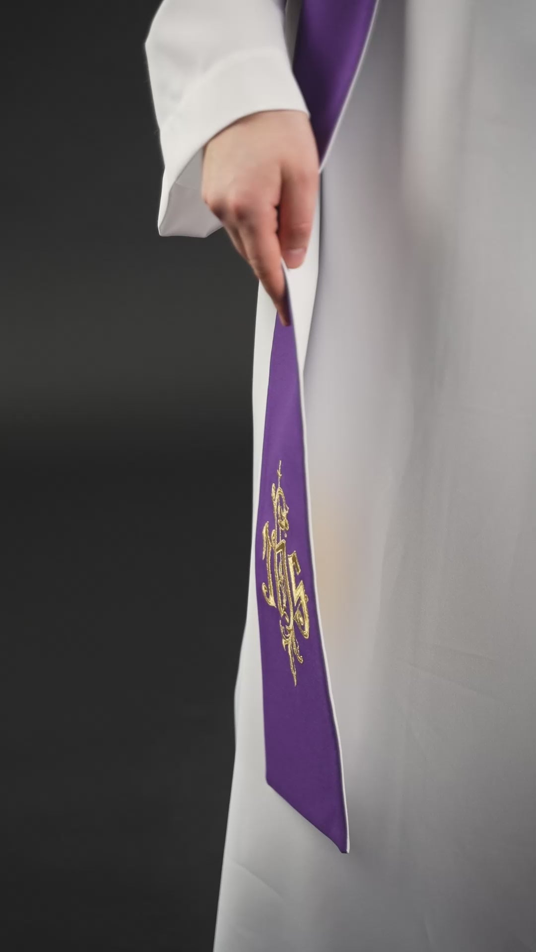 Étole double face Étole simple face en tissu uni de haute qualité, décorée d'une riche broderie avec le symbole IHS.