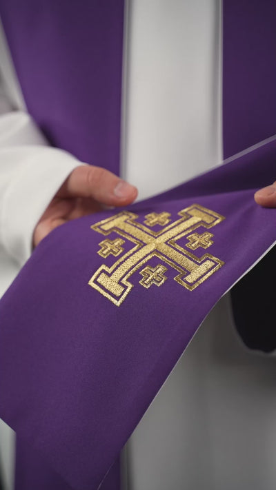 Étole double face Croix de Jérusalem violette et blanche